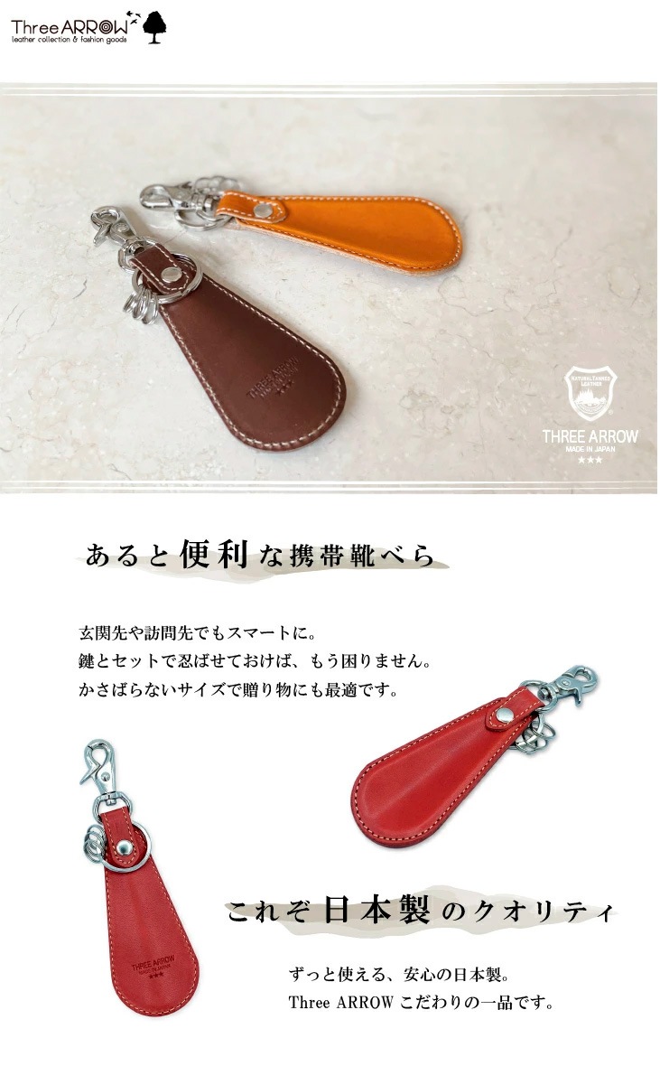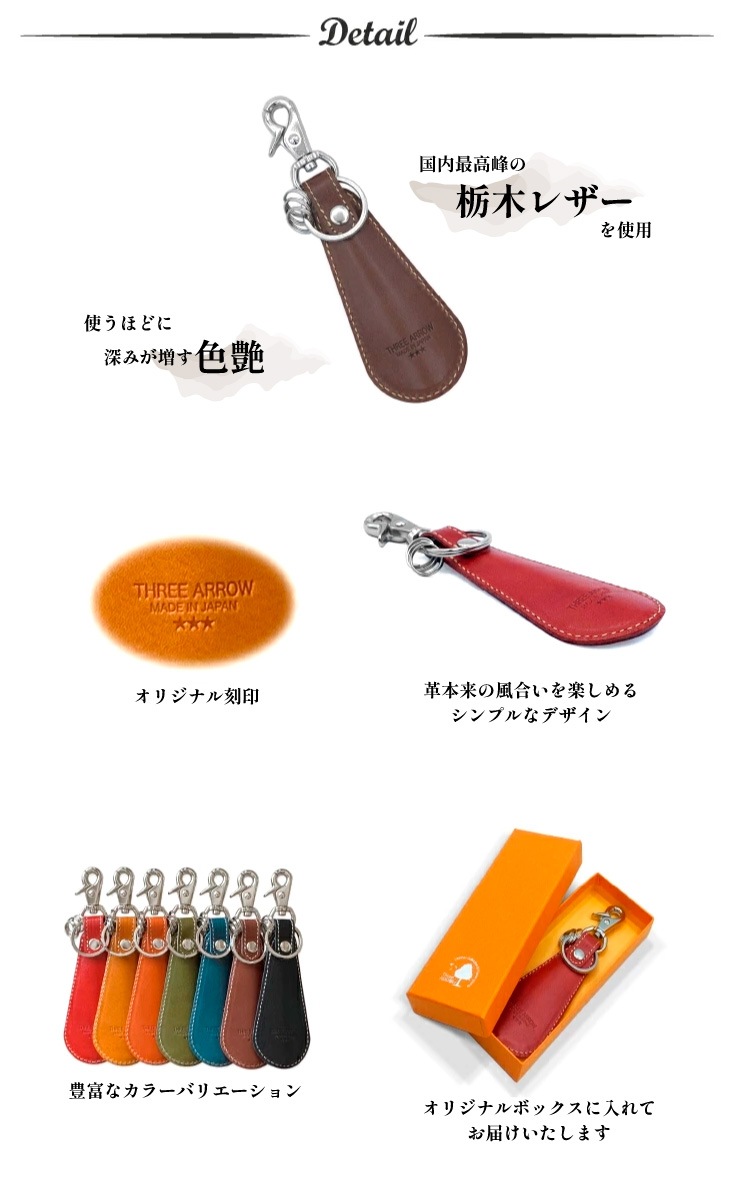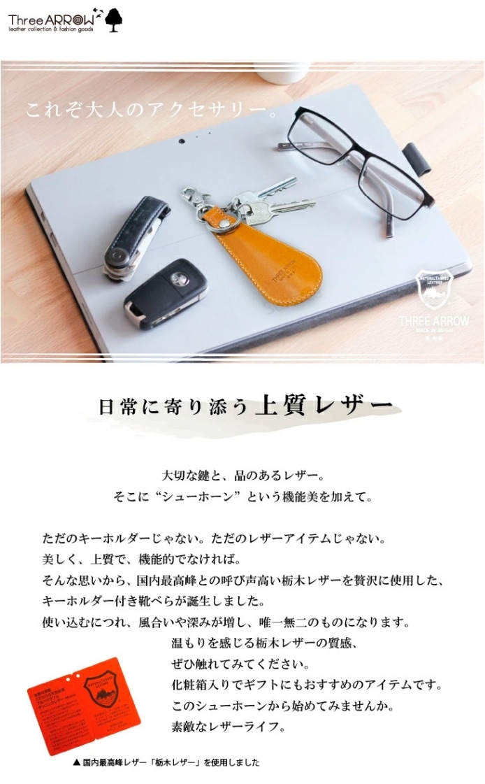 国内最高品質で知られる栃木レザーを使った靴べらキーホルダーです。