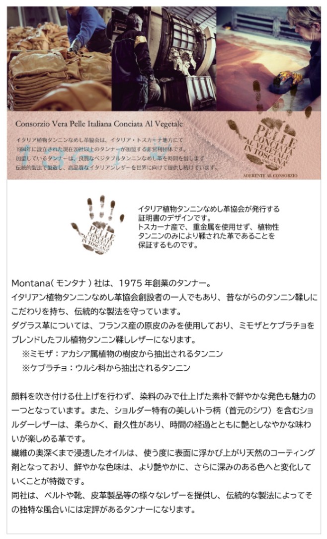 肌に触れ、空気に触れ、唯一無二の風合いへと変化する経年変化(エイジング)をお楽しみ頂けます。
