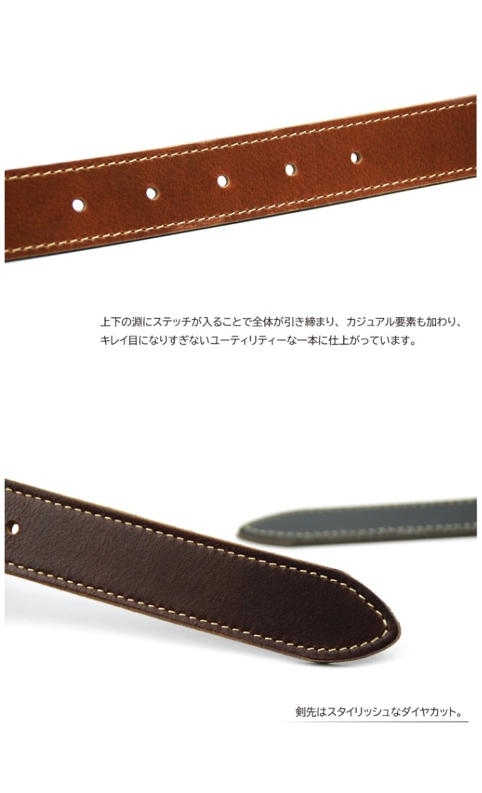 上下に入ったステッチが適度なカジュアルさを演出し、カジュアルからビジネス、フォーマルまで使用できるユーティリティな1本に仕上がっています。
