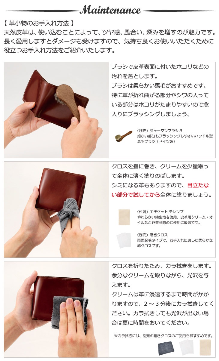 革製品のお手入れについてはこちらのページをご覧ください。