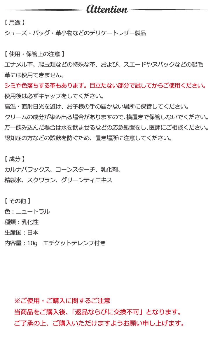 用途 : 財布、靴、バッグ、革小物などの革製品のお手入れ(お試し用)